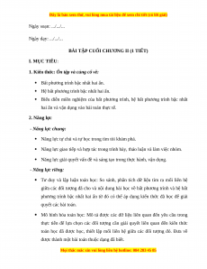 BÀI TẬP CUỐI CHƯƠNG II (1 TIẾT) I. MỤC TIÊU: