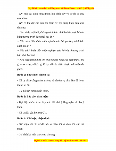 c) Sản phẩm: HS trả lời được câu hỏi về bất phương trình, hệ bất phương trình bậc nhất hai ẩn.