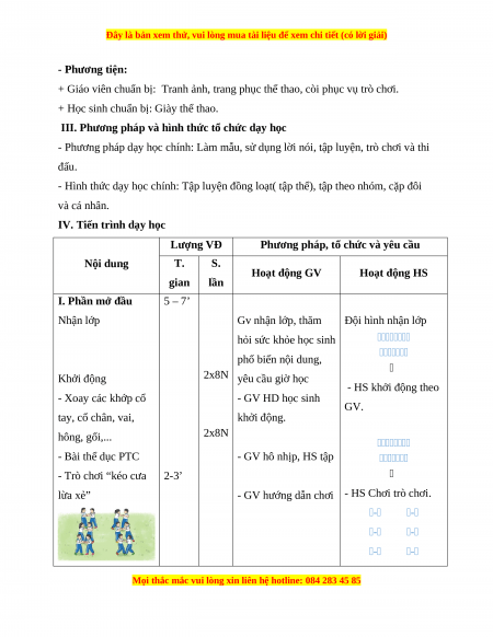 - Phương pháp dạy học chính: Làm mẫu, sử dụng lời nói, tập luyện, trò chơi và thi đấu.