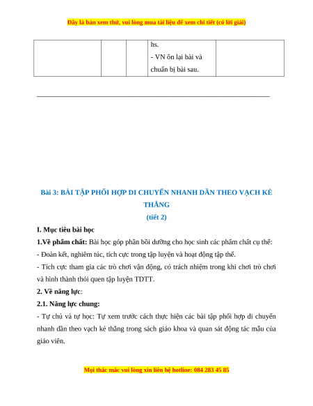 Giáo án Bài tập phối hợp di chuyển nhanh dần theo vạch kẻ thẳng Giáo dục thể chất 2 Kết nối tri thức