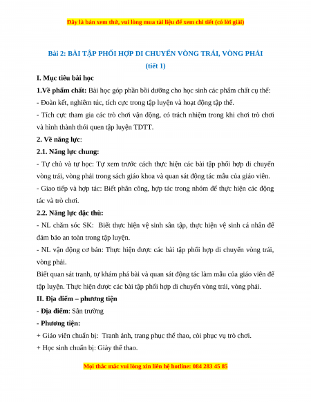 Giáo án Bài tập phối hợp di chuyển vòng trái, vòng phải Giáo dục thể chất 2 Kết nối tri thức