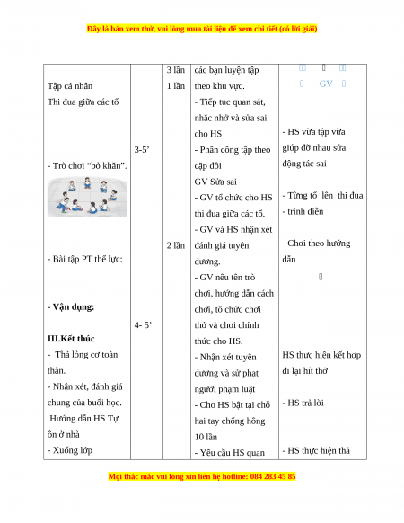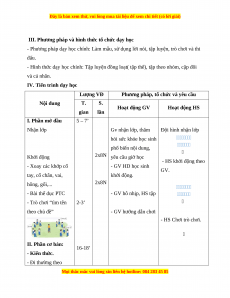 - Phương pháp dạy học chính: Làm mẫu, sử dụng lời nói, tập luyện, trò chơi và thi