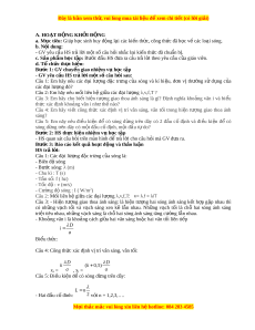 ị vị trí vân sáng, vân t i ố trong hi n ệ tư ng ợ giao thoa ánh sáng? Câu 5: Em nãy nêu đi u ề ki n ệ để có sóng d ng ừ trên dây có 2 đ u ầ c ố đ nh ị và đi u ề ki n ệ đ ể có sóng d ng ừ trên dây có m t ộ đ u c ầ ố đ nh, m ị ột đ u t ầ do? ự Bư c ớ 2: HS th c ự hi n ệ nhi m ệ v h ụ c ọ t p ậ - HS quan sát câu h i ỏ trên màn hình đ t ể r l ả i ờ cho câu h i ỏ mà GV đ a ư ra. Bư c ớ 3: Báo cáo k t q ế u h ả o t đ ạ n ộ g và th o l ả u n ậ HS trả l i ờ : Câu 1: Các đại lư ng ợ đ c ặ tr ng c ư a ủ sóng là: - Biên độ sóng - Bư c ớ sóng: λ (m) - Chu kì : T (s) - Tần s : ố f ( hz) - T c ố đ : ộ v (m/s) - Cư ng đ ờ ộ sóng : I ( W/m2) Câu 2: M i ố liên h gi ệ a ữ các đại lư ng ợ λ,v,f,T: v= λ.f = λ/T Câu 3: - Hi n ệ tư ng