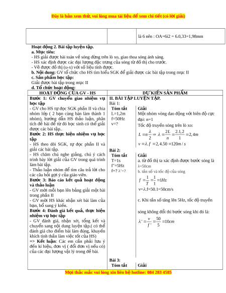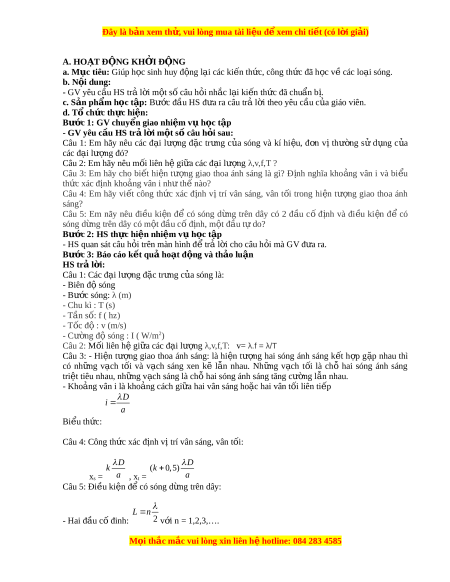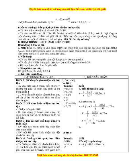Đây là bản xem th , vu ử i lòng mua tài li u ệ đ xe ể m chi ti t (c ế ó l i ờ gi i ả ) A. HO T Ạ Đ N Ộ G KHỞI Đ N Ộ G a. M c ụ tiêu: Giúp h c ọ sinh huy đ ng ộ lại các ki n t ế h c ứ , công th c ứ đã h c ọ v c ề ác lo i ạ sóng. b. N i ộ dung: