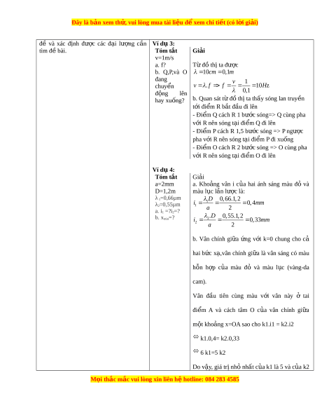 tậm trong bài tập về giao thoa sóng ánh sáng. b. N i ộ dung: - GV cho HS đ c ọ và nghiên c u n ứ ội dung các ví d t ụ rong ph n I ầ