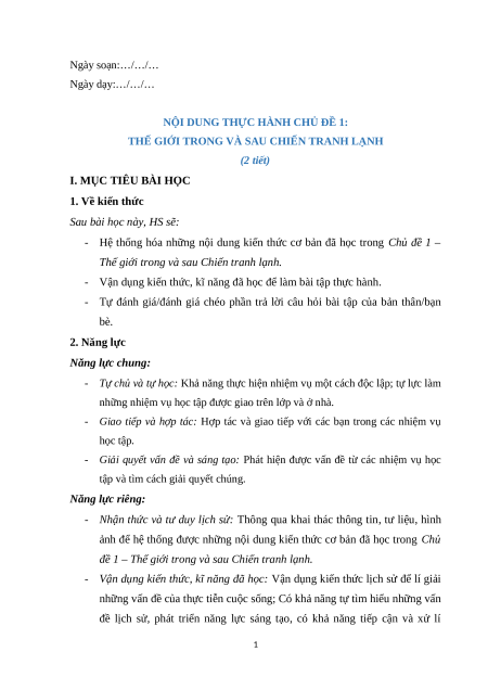 THẾ GIỚI TRONG VÀ SAU CHIẾN TRANH LẠNH (2 tiết)