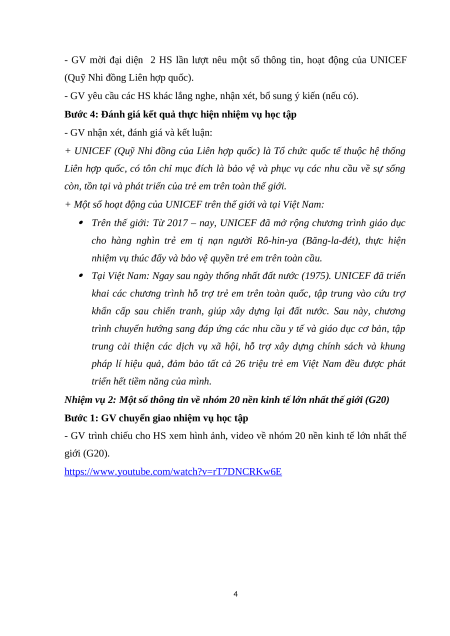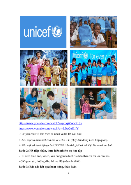- GV trình chiếu cho HS xem hình ảnh, video về UNICEF (Quỹ Nhi đồng Liên hợp quốc). 2