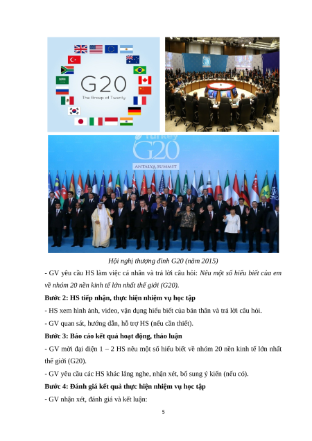- GV trình chiếu cho HS xem hình ảnh, video về nhóm 20 nền kinh tế lớn nhất thế giới (G20).