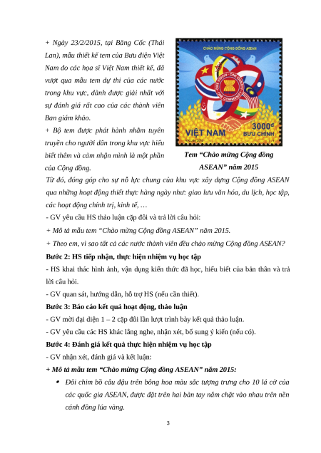 - HS mô tả và nêu ý nghĩa mẫu tem “Chào mừng Cộng đồng ASEAN” năm 2015.