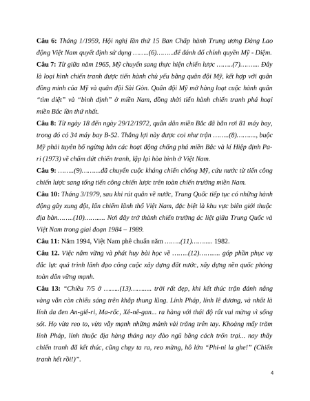 Câu 9: ……..(9)……....đã chuyển cuộc kháng chiến chống Mỹ, cứu nước từ tiến công