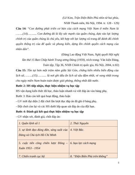 - Nhận thức và tư duy lịch sử: Thông qua khai thác thông tin, tư liệu, hình ảnh
