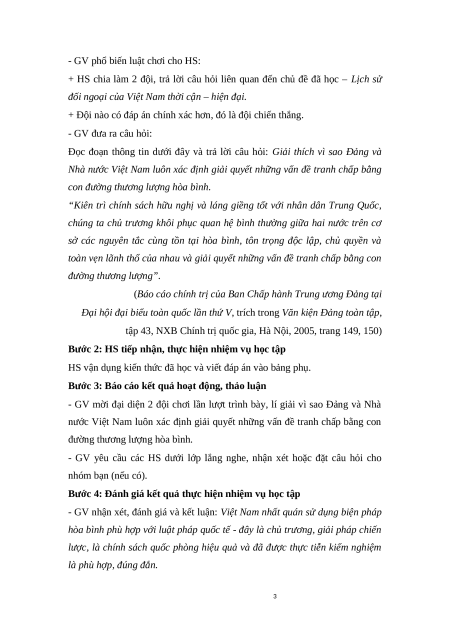 - GV nhận xét, đánh giá và kết luận: Việt Nam nhất quán sử dụng biện pháp