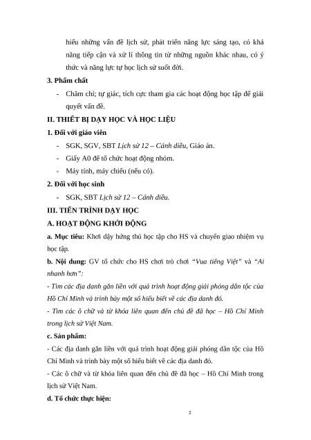 Bộ giáo án Lịch sử 12 Cánh diều đã cập nhật đủ Cả năm.