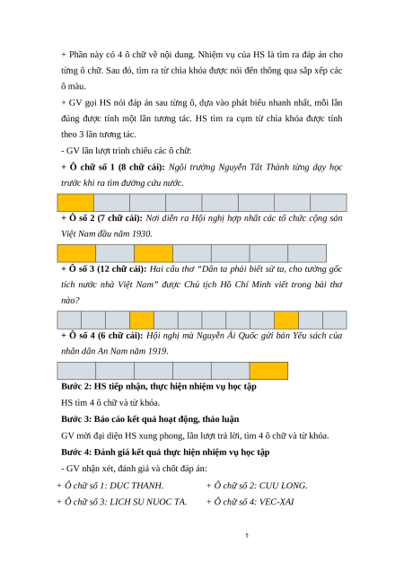- Các ô chữ và từ khóa liên quan đến chủ đề đã học – Hồ Chí Minh trong lịch sử Việt Nam.