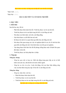 BÀI 13. BÀI TIẾT VÀ CÂN BẰNG NỘI MÔI I. MỤC TIÊU 1. Kiến thức Sau bài học này, HS sẽ: