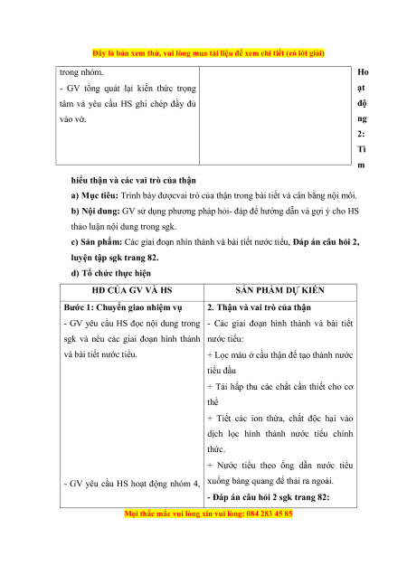 Đây là bản xem thử, vui lòng mua tài liệu để xem chi tiết (có lời giải) HĐ CỦA GV VÀ HS SẢN PHẨM DỰ KIẾN