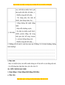 ấ đề và sáng t o: ạ Đ t ặ đư c ợ câu h i ỏ khác nhau về các v n ấ đề tìm hi u ể trong bài h c. ọ V n ậ d ng ụ ki n ế th c ứ v ề bài ti t ế và cân b ng ằ n i ộ môi để gi i ả thích các câu h i ỏ th c t ự i n. ễ 2. V ph ề ẩm ch t ấ - Chăm ch : i Chủ đ ng ộ trong h c ọ t p, ậ h ng ứ thú tìm hi u ể nh ng ữ n i ộ dung liên quan đ n ế bài ti t ế và cân b ng ằ n i ộ môi. - Trách nhi m ệ : Chủ đ ng, ộ có ý th c ứ cao trong nhi m ệ th c ự hi n ệ các nhi m ệ vụ khi đư c ợ phân công. - Trung th c: ự Có thái đ ộ trung th c ự khi tìm hi u ể thông tin, s ố li u ệ trong quá trình tìm hi u. ể II. THIẾT B D I AY H C O VÀ H C O LI U Ê 1. Giáo viên - SGK, tài li u g ệ i ng ả d y ạ , giáo án. - Các hình nh l ả iên quan đ n bài ế h c. ọ - Phi u h ế c t ọ p. ậ Phi u h ế c t ọ p s ậ 1 ố 1. Đi n bi ề