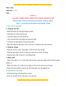 BÀI 28: BÀI TOÁN GIẢI BẰNG HAI BƯỚC TÍNH (2 TIẾT)