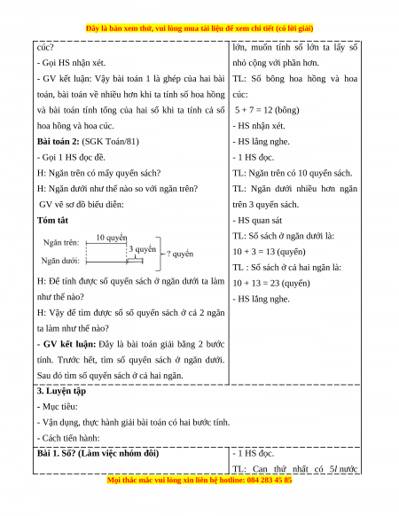 - GV kết luận: Vậy bài toán 1 là ghép của hai bài TL: Số bông hoa hồng và hoa