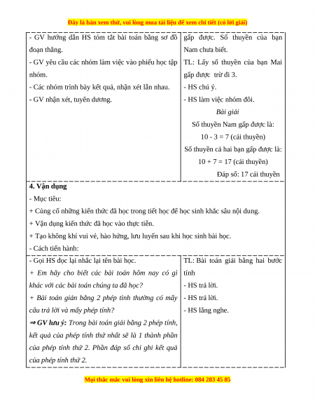 - GV kết luận: Đây là bài toán giải bằng 2 bước