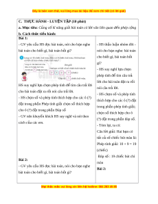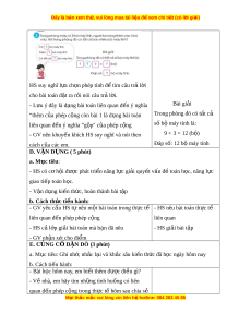 ờ văn liên quan đ n phép c ế ng, ộ phép tr ; ừ chia s , t ẻ rao đ i ổ , đ t ặ câu h i ỏ , HS có cơ h i ộ đư c phát ợ tri n ể năng l c ự t duy và l ư p l ậ u n ậ toán h c, ọ năng l c ự gi i ả quy t ế v n đ ấ t ề oán h c, ọ năng l c ự giao ti p t ế oán h c. ọ 3. Phẩm ch t ấ + Yêu thích h c m ọ ôn Toán, có h ng ứ thú v i ớ các con số + Phát tri n t ể duy t ư oán cho h c s ọ inh + Chăm ch , t ỉ rách nhi m ệ , t gi
