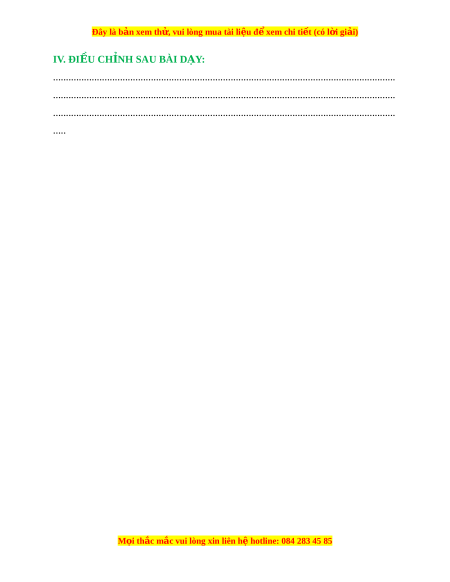 IV. ĐI U CH NH SAU BÀI D Y:Ề Ỉ Ạ