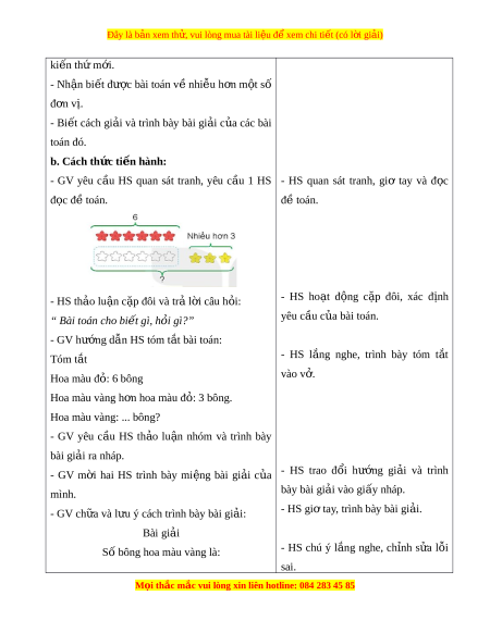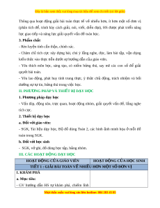 ọ thắc mắc vui lòng xin liên hotline: 084 283 45 85 Đây là bản xem th , vui ử lòng mua tài li u ệ đ xe ể m chi ti t ế (có l i ờ gi i ả ) ki n t ế h m ứ i ớ . - Nh n ậ bi t ế được bài toán v nhi ề u ễ h n ơ m t ộ số đ n v ơ ị. - Bi t ế cách gi i ả và trình bày bài gi i ả c a ủ các bài toán đó. b. Cách th c t ứ i n hành: ế - GV yêu c u