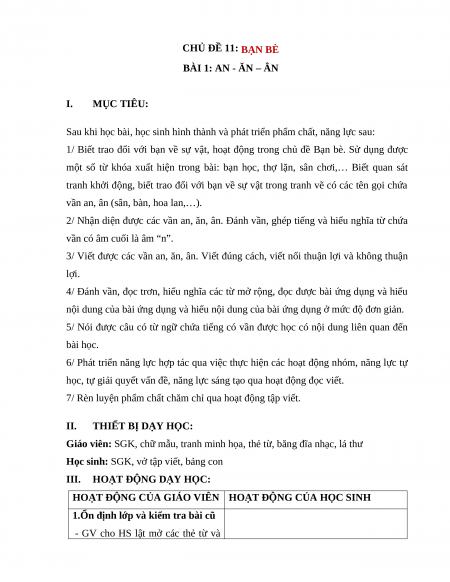 BÀI 1: AN - ĂN – ÂN I. MỤC TIÊU: