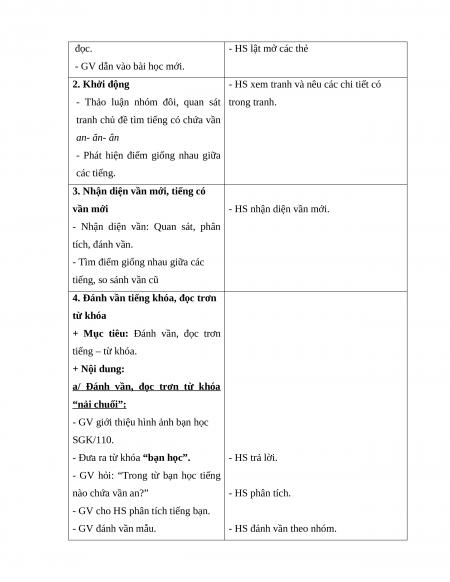 - Nhận diện vần: Quan sát, phân tích, đánh vần.
