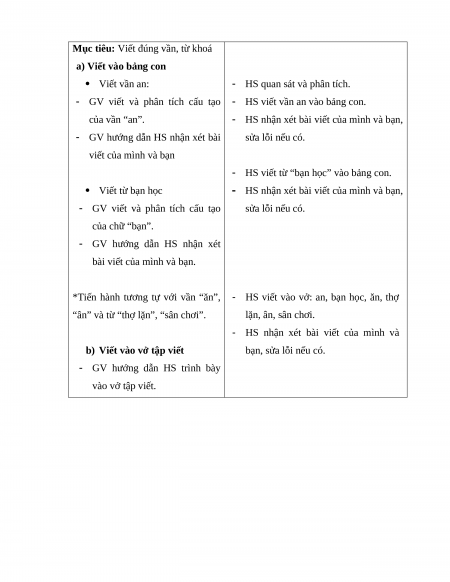 3/ Viết được các vần an, ăn, ân. Viết đúng cách, viết nối thuận lợi và không thuận lợi.