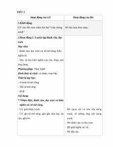 tranh khởi động, biết trao đổi với bạn về sự vật trong tranh vẽ có các tên gọi chứa