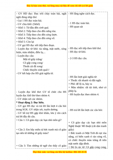 - Hiểu nghĩa của các từ ngữ trong bài (thoắt, phô, màu nhiệm,...)