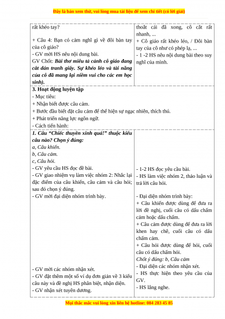 1. Câu “Chiếc thuyền xinh quá!” thuộc kiểu
