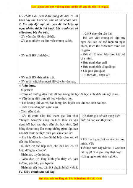 + Bước đầu biết đặt câu cảm để thể hiện sự ngạc nhiên, thích thú.