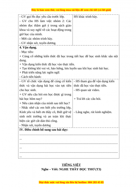 IV. Điều chỉnh bổ sung sau bài dạy: