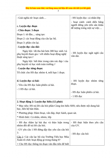 * Hình thức: Cá nhân, nhóm, lớp a. Đọc mẫu