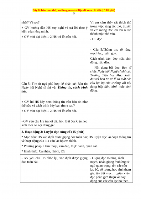 đầu thể hiện đúng giọng đọc văn bản thông tin; trả lời được các câu hỏi tìm hiểu
