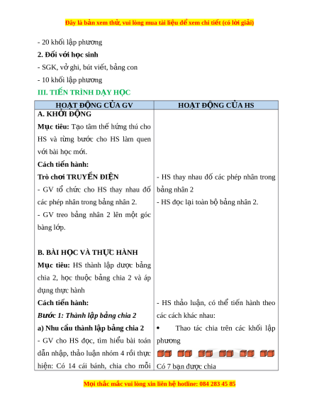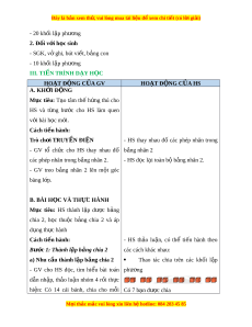 Mục tiêu: HS thành l p ậ dư c ợ b ng ả chia 2, h c ọ thu c ộ b ng ả chia 2 và áp d ng t ụ h c ự hành Cách ti n hà ế nh: - HS th o ả lu n, ậ có thể ti n ế hành theo