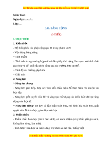 Ngày dạy: .../.../... L p: ớ ... BÀI: BẢNG C N Ộ G (3 TIẾT) I. M C Ụ TIÊU 1. Ki n t ế h c ứ - H t