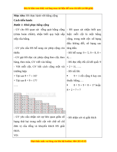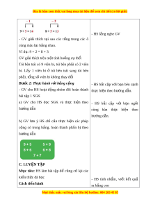 ệ hống hóa các phép c ng ộ qua 10 trong ph m ạ vi 20 - V n ậ d ng b ụ ng ả c ng: ộ + Tính nh m ẩ + Tính toán trong trư ng ờ h p ợ có hai d u ấ phép tính c ng, ộ làm quen v i ớ tính ch t ấ giao hóa và k t ế qu c ả a ủ phép c ng qua ộ các trư ng h ờ p c ợ ụ th . ể + Tính đ dài ộ đư ng ờ g p khúc ấ + Gi i ả toán 2. Năng l c ự