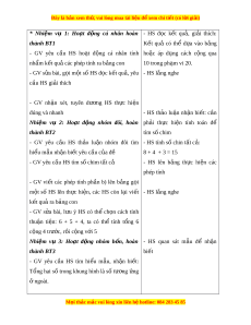 ộ nhóm đôi hoàn thành th c ự hi n t ệ heo hư ng ớ d n. ẫ bài t p ậ 1 SGK a) GV cho HS đ c ọ SGK và th c ự hi n ệ theo - HS b t ắ c p ặ v i ớ b n ạ ng i ồ hư ng ớ d n ẫ cùng bàn th c ự hi n ệ theo hư ng ớ d n. ẫ b) GV l u ư ý HS chỉ c n ầ th c ự hi n ệ các phép c ng ộ có trong b ng, ả hoàn thành ph n ầ b) theo hư ng ớ d n ẫ C. LUYỆN TẬP