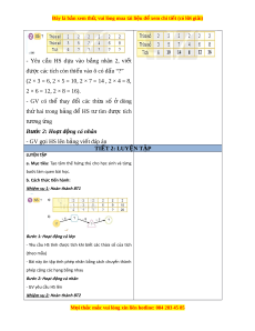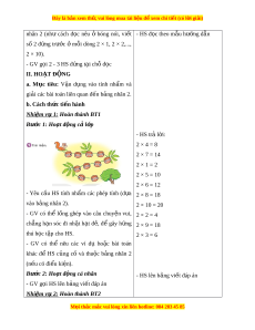 ế phép nhân, HS phát tri n ể năng l c ự gi i ả quy t ế v n đ ấ , ề năng l c gi ự ao ti p t ế oán h c ọ 3. Phẩm ch t ấ + Yêu thích h c m ọ ôn Toán, có h ng ứ thú v i ớ các con số + Phát tri n t ể duy t ư oán cho h c s ọ inh II. PHƯ N Ơ G PHÁP VÀ THI T Ế B D Ị Y Ạ H C Ọ 1. Phư ng ơ pháp d y h ạ c ọ - V n ấ đáp, đ ng ộ não, tr c ự quan, ho t ạ đ ng ộ nhóm, đóng vai, gi i ả quy t ế v n ấ đ , ề l ng ắ nghe tích c c. ự M i