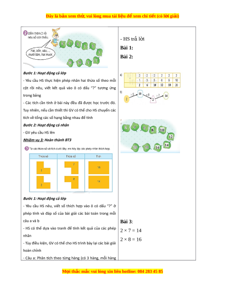 Đây là bản xem th , vu ử i lòng mua tài li u ệ đ xe ể m chi ti t (c ế ó l i ờ gi i ả ) - Yêu c u ầ HS d a ự vào b ng ả nhân 2, vi t ế đư c các ợ