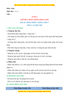 - Vận dụng vào tính nhẩm, giải các bài tập, bài toán thực tế liên quan đến bảng nhân 7, bảng chia 7.