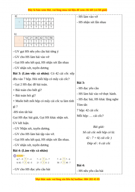 (hoặc đọc các phép tính trong bảng chia 7 đã