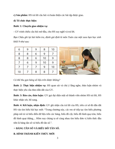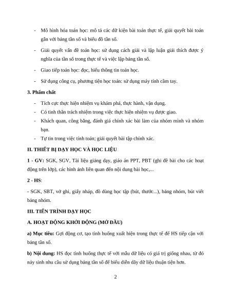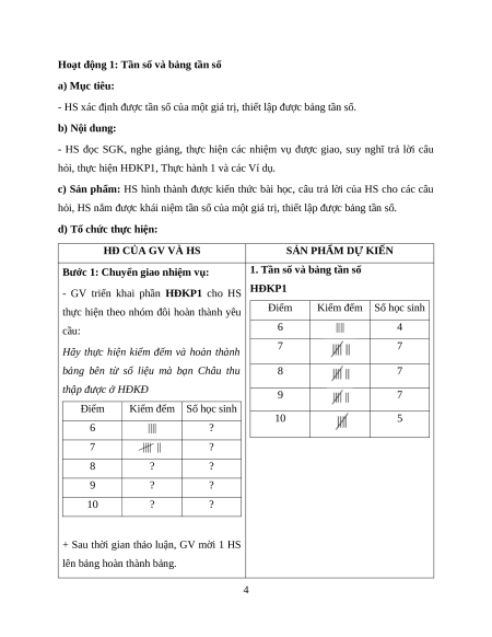 - HS xác định được tần số của một giá trị, thiết lập được bảng tần số. b) Nội dung: