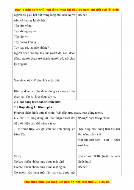 một trong hai khả năng: mặt sấp xuất hiện hoặc mặt ngửa xuất hiện. Bài 1: