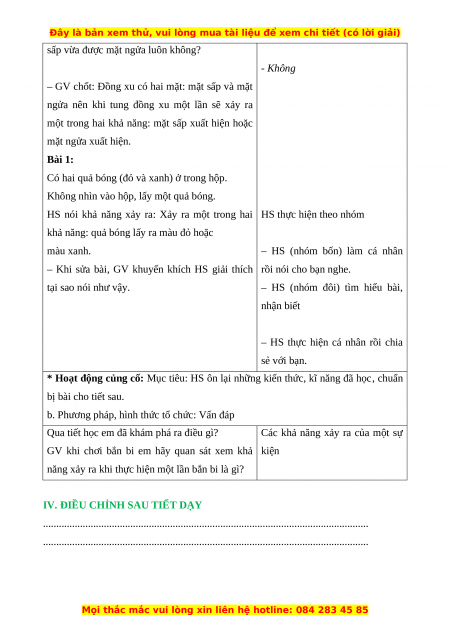 HS nói khả năng xảy ra: Xảy ra một trong hai HS thực hiện theo nhóm