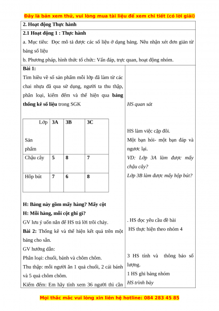 Giáo án Bảng thống kê số lượng Toán 3 Chân trời sáng tạo