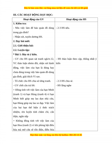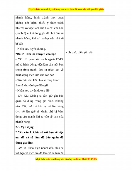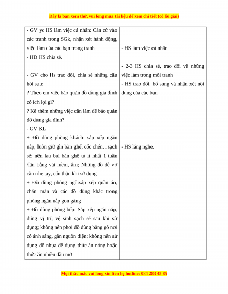 - HS nêu được một số biểu hiện của việc biết bảo quản đồ dùng gia đình